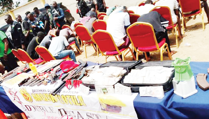 “Two locally fabricated toy guns that were used to perfect robbery were also recovered. Fifteen cartridges, four expended cartridges, six matches, 34 bags of weeds suspected to be Indian hemp, and two bags containing fake US dollars and Pounds Sterling notes were recovered as well.”