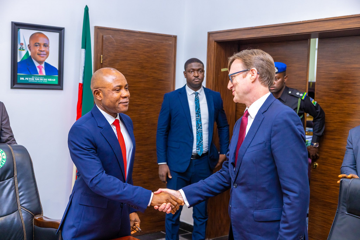 Enugu State Governor, Peter Mbah welcomes UK High Commissioner to Nigeria, Dr Richard Montgomery.