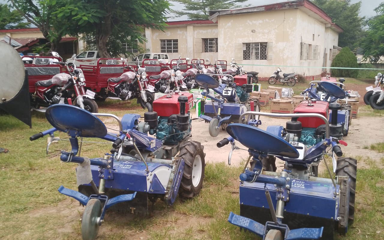 She mentioned the farm inputs to include 92 irrigation pumps; 40 solar-powered knapsack sprayers, eight tricycles; four power tillers, a set of improved stainless steel rice steam parboilers and eight garri processing equipment including grinding machine, communal fryer, hydraulic presser and cassava chipping machine,