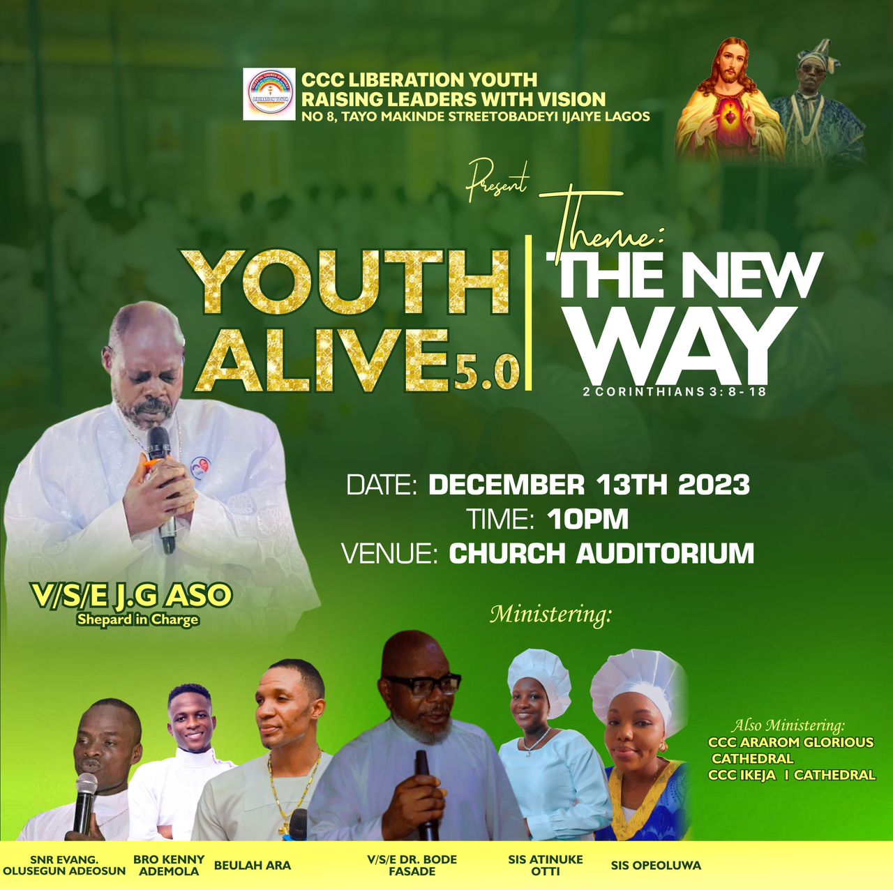 According to the statement released by the church signed by the coordinator, said: “We are using this opportunity to invite the general public to our youth night tagged as Youth Alive 5.0. This is in line with our 5th Adult Harvest and Thanksgiving Service on Sunday 17th, December 2023. We want everyone to come and witness the presence and ministration of God in our lives. According to the bible verse of our theme The New Way, 2 Corinthians 3:8-18… “If the old way, which brings condemnation, was glorious, how much more glorious is the new way, which makes us right with God.”