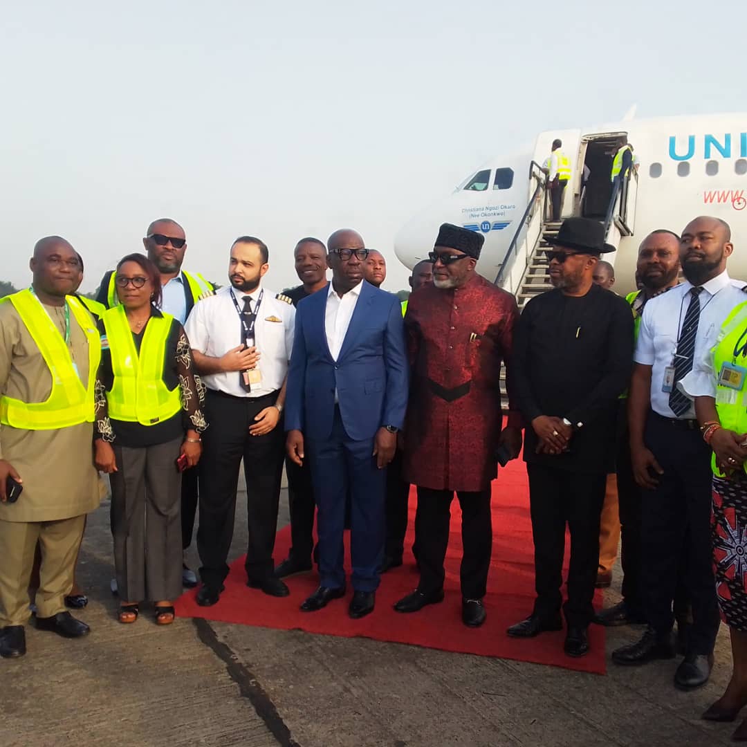 It was excitement unlimited on Tuesday in the ancient city of Benin as the Edo State Government rolled out the red carpet to receive United Nigeria Airlines as its Airbus 320 – 200 landed at Benin Airport during the flag off of the inaugural flight.