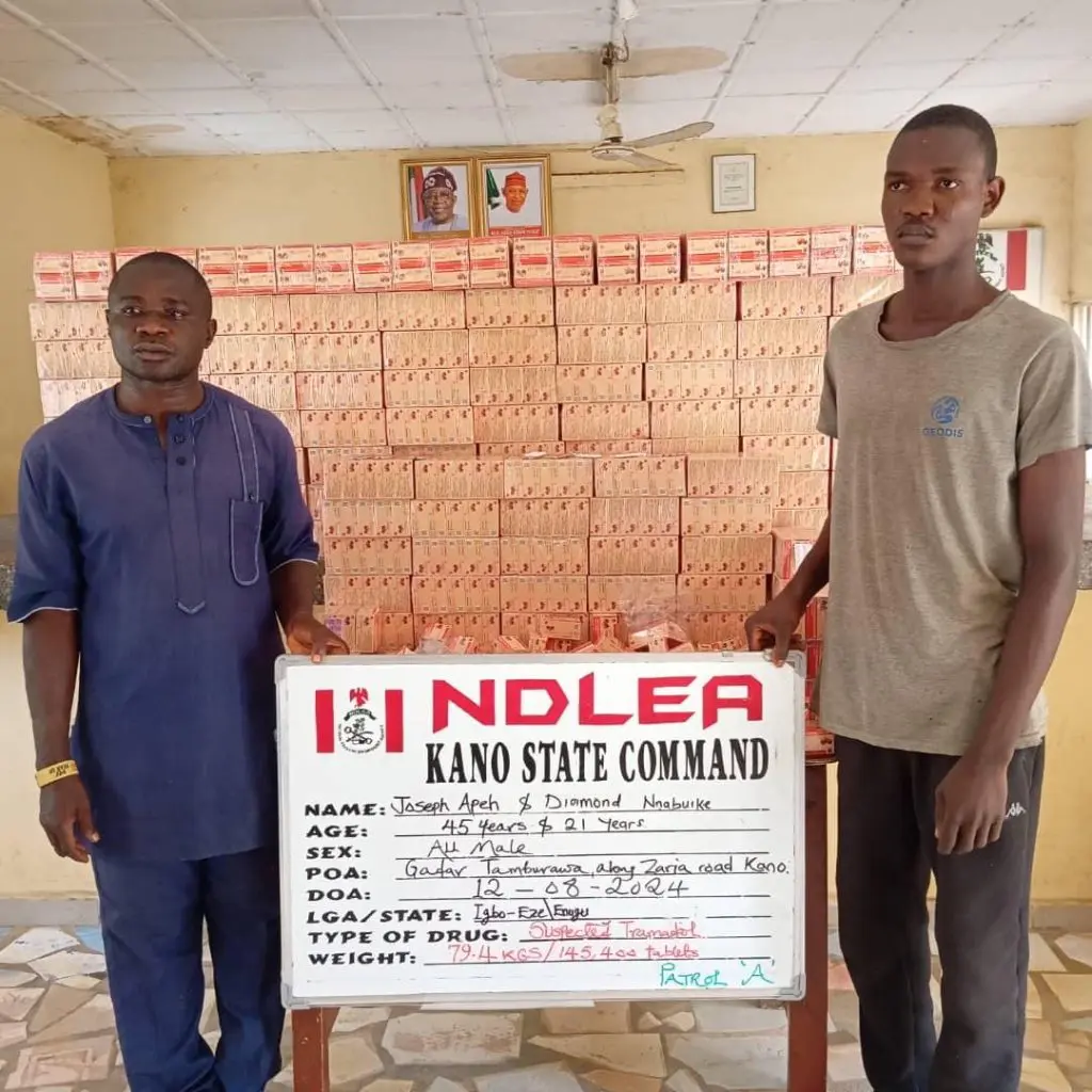 Babafemi noted that a total of 30,370 pills of tramadol and 177 grammes of methamphetamine were recovered from the duo of Musbahu Abdullahi and Saleiman Ahmed at Wukari, Taraba State, on Thursday, while they were conveying the drugs from Onitsha, Anambra State, to Yola, Adamawa State.