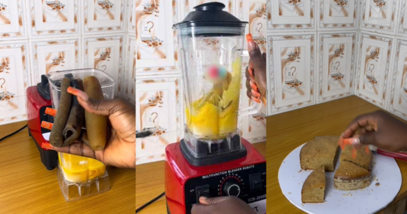 Nigerians called for government intervention over the use of blenders to make ridiculous dishes after a female chef baked cow skin ‘Ponmo’ cake.