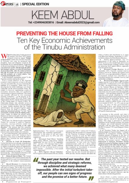 PREVENTING THE HOUSE FROM FALLING: Ten Key Economic Achievements of the Tinubu Administration, By Keem Abdul