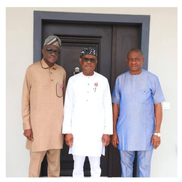 According to a Facebook post by Wike’s media aide Lere Olayinka, the three leaders met on Monday morning.