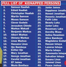 Below are the names of the kidnap victims: