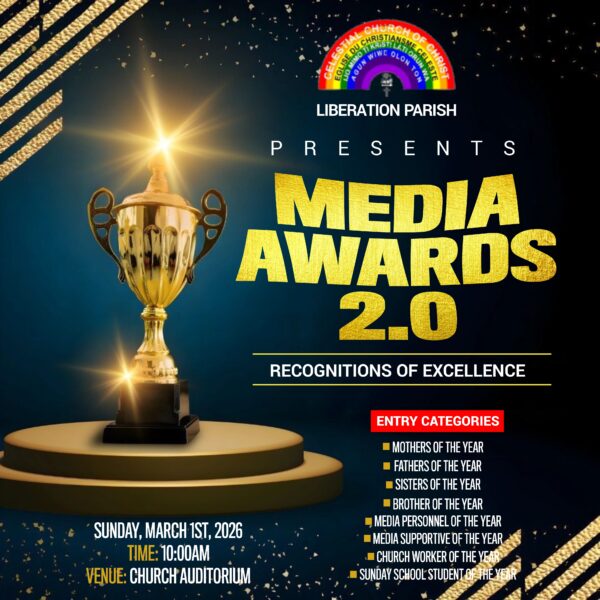 The Celestial Church of Christ (CCC) Liberation Parish is set to hold its 2nd Media Award Ceremony today, Sunday, March 1, 2026, as part of efforts to promote excellence, unity and ethical standards within the parish community.