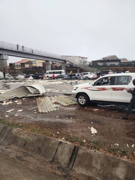 The incident occurred when strong winds caused the terminal’s roof to collapse, resulting in debris scattering across the busy roadway.