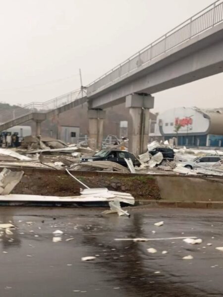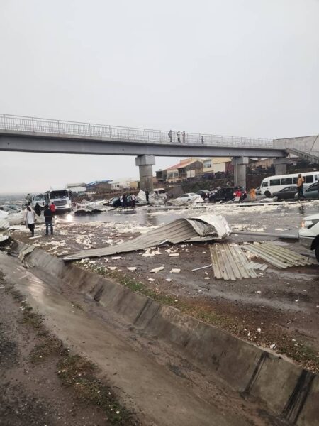 The incident occurred when strong winds caused the terminal’s roof to collapse, resulting in debris scattering across the busy roadway.
