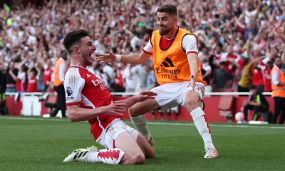 Declan Rice scored his first Arsenal goal deep into injury time and Gabriel Jesus added another one past the 100th minute mark to give Arsenal a...