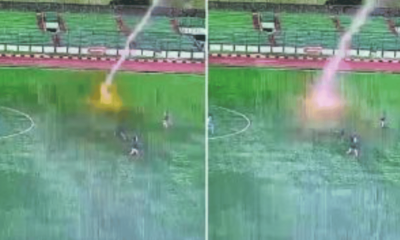 A footballer has been killed after being struck by lightning whilst playing in Indonesia. Shocking video captured the moment Septain Raharja, 35, collapsed at Siliwangi Stadium...
