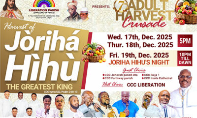 The Celestial Church of Christ (CCC), Liberation Parish (Dwelling of Peace), is set to host its 7th Harvest of Jòrihá Hìhù (The Greatest King) from December...